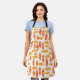 Cet tablier a un motif répétitif d'ovales en orange rétro et jaune avec des ovales blancs éparpillés le tout sur un champ de blanc.
