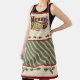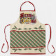 A colorful Christmas apron featuring a hand-drawn "Merry Christmas" and a classic, Christmas plaid in green and red with snowflakes in the pattern. The Christmas flowers around the "Merry Christmas" add some extra color, and the holly decorations add a classic touch to this Christmas apron.