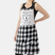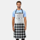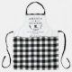 Faites-vous posséder ce magnifique tablier motif noir et blanc à damiers, avec la possibilité de customiser les quatre zones de texte avec votre propre message! Conception avec une belle zone pour votre texte, rehaussée de spatule, mélange de bols, fourche et whisk détails. Une idée cadeau unique !