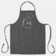 Le tablier du chef sur mesure comporte un script de chef mignon et un casquette avec un nom personnalisé sur arrière - plan gris. Grand tablier de chef personnalisé.