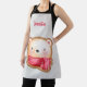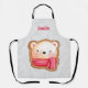 Tablier avec un joli et adorable visage d'ours dressé sur une base de biscuits. Portant un foulard rayé rouge et blanc. Arrière - plan est un motif qui a l'air de tomber la neige, en argent et blanc.