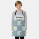 Faites cuisine avec ces enfants cet hiver et la saison des fêtes et faites-les mettre sur ce plaisir sur tout l'espace imprimé que vous pouvez personnaliser avec un nom. Ce dessin est composé d'un motif animal cool avec des ours polaires avec des chandails jaunes. Un arrière - plan gris-vert doux avec des flocons de neige blancs et des feuilles de glace pour que l'ours polaire puisse se tenir sur cet tablier pour les garçons.