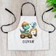 Cet adorable tablier pour enfants personnalisé présente un charmant bébé dinosaure conduisant joyeusement un véhicule de construction miniature. Avec son expression ludique et ses couleurs vibrantes, cette merveilleuse création ajoute une touche d'enchantement à tout espace, séduisant pour tous, en particulier les enfants et les bébés.