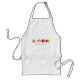Un tablier comportant une illustration d'une bobine de fil orange, des ciseaux, d'un coussin de goupille, et de deux échantillons de tissu. Personnalisez avec votre nom dans l'orange.