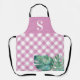 Un tablier de cuisine rose unique pour elle est conçu à l'aide d'un motif de en vichy rose et une réplique de mes feuilles d'origine moderne de monstère aquarelle dans les tons tropicaux de verts avec votre initiale monogramed. Parfait comme cadeau de chef pour la cuisine et la cuisson au quotidien. Pour voir la ligne complète de Victoria Grigaliunas visitez www.zazzle.com/dotellabelle