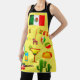 Tablier de cuisine avec image du drapeau mexicain et autres images d'une fête contre un arrière - plan jaune.