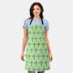 Ce tablier a un design moderne du milieu du siècle de starbursts atomiques rétro sur un arrière - plan vert.