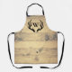Faites la cuisine pour les prochaines vacances avec ce tablier de style rustique et amusant! Ce tablier sur mesure durable présente votre lettre monogramme en noir entouré de bois de cerf noir sur un arrière - plan d'impression de planches de bois.