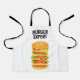 Image de hamburger haute tour et texte Burger Expert imprimé sur petit tablier. Ajouter un peu pour les tabliers de taille moyenne et grande.