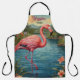 Un paradis vintage avec ce flamant rose de style rétro, élégamment niché dans un lagon tropical paisible.