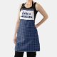 Un tablier moderne, tendance et personnalisé qui ferait un cadeau parfait pour tout cuisinier, cuisinier ou boulanger en herbe. Un motif à feuillage persistant et durable de en vichy bleu marine couvre la plupart de cela sur tablier imprimé. En haut du tablier se trouve un espace blanc clair avec un modèle à personnaliser, il suffit de remplacer le nom dans la zone de texte pour le faire. Sous le nom est une image d'un rouleau pin en bleu avec le mot "cuisine" en lettres blanches imprimé sur elle. Un cadeau customisé pratique pour cette personne spéciale.