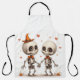 Les deux squelettes ont de grands yeux amicaux et de larges sourires, créant une atmosphère ludique et charmante. Un squelette porte une cravate arc orange, tandis que l'autre est habillé à la fois d'une cravate arc et d'un casquette de sorcière orange mignon. Autour des squelettes se trouvent des coeurs oranges flottants, des étoiles et de petits citrouilles, ajoutant à l'atmosphère fantaisiste et à l'Halloween. La scène générale est mignonne et amusante, ce qui la rend parfaite pour un design d'Halloween léger.