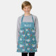 Ce joli tablier d'enfants turquoise et branché présente un motif de dessin animé sur le narval arc-en-ciel mignon, avec une méduse, une étoile de mer et des algues, et a de l'espace pour vous d'ajouter votre nom de filles. Le cadeau idéal pour tous les amoureux du narval ou de la mer.