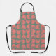 Ce tablier a un design boho de fleurs de corail se répétant à travers le design sur un champ de vert.