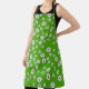 Tablier décoré de fleurs blanches sur fond vert. très fleuri, il évoque le printemps et l'été . Idéal pour barbecue et pique nique .