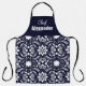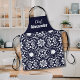 Ajoutez ce design floral folklorique nordique élégant et festif à vos accessoires de cuisine. Ce design de tablier est simple mais décoratif et festif, avec des détails floraux et botaniques délicats suivant un motif de carrelage de base. Un fond bleu marine uni sur la partie supérieure du tablier pour une lisibilité de la typographie personnalisable. Inspiré par le style d'art folklorique nordique. Dessin original de Suki, tous droits réservés.