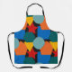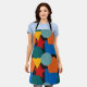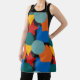 Ce tablier a une conception Bauhaus de formes aléatoires en bleu, turquoise, jaune, rouge et orange.