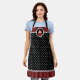 © 2020 Socialite Designs Inc. tablier lunaire avec un arrière - plan à pois noir et blanc, bande rouge sur héline supérieure et inférieure, et un cupcake à fraise en cercle.