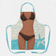 Juste pour le plaisir corps bikini féminin dans un tan foncé ou fille de couleur avec une turquoise plage moderne starfish design arrière - plan WhimsicalArtwork™