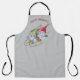 Le tablier Whimsical Holiday présente l'aquarelle d'une paire de gnomes sur un traîneau à mouvement rapide. Arrière - plan gris avec texte personnalisable dans une police rouge foncé moderne.