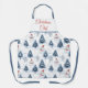 Un joli tablier de Noël de Snowman et d'arbres enneigés avec des snowmen portant des chapeaux de Père Noël rouges et des sapins recouverts de neige avec un arrière - plan blanc enneigé. Un joli design festif pour la saison des fêtes.