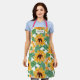 Apron avec un motif d'été mignon. Joli tournesol jaune entouré de feuilles verts dans un motif répétitif. Un cadre rectangle blanc superposé avec votre texte à l'intérieur.