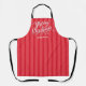 Ce design comprend un joli script de calligraphie de Noël mignon tablier avec un minimaliste simple rayures, blanc et rouge blanc blanchâtre, script de calligraphie tendance élégant, classique style de fête de vacances classique, design créatif fantaisie de motif de filigree, joyeux script de voeux de Noël idée cadeau de cuisine de Noël, chef cuisinier cadeau de boulanger, créatif audacieux rayé mignon