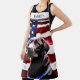 Cette conception de tablier présente un buste d'un laboratoire de chocolat un drapeau américain muet en rouge, blanc et bleu. Ajoutez un nom pour le personnaliser. Idéal pour le chasseur de patriotes ou l'amoureux des chiens dans votre vie. Faites un grand cadeau de Fête des pères ou d'anniversaire pour le cuisinier ou le griller de votre famille. Créé par Simply Farmhouse Press.