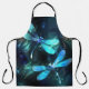 Deux libellules transparentes, lumineuses, turquoise, artistiquement dessinées sur l'arrière - plan de nuit avec des algues luminescentes et des lucioles. libellule éclatante.
