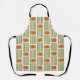 Ce tablier a un design moderne du milieu du siècle composé de cinq lignes vertes et d'un rectangle arrondi doré avec un rectangle arrondi orange répété à travers le design.