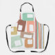 Ce tablier présente un design moderne du milieu du siècle avec des lignes et des rectangles dans des tons rétro de rouge, jaune, orange, bleu, vert, marron et rose.