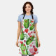 A whole bunch of silly pickles are loving the idea of cooking up something delicious, the design has cartoon pickles that are on the goofy side and all of them are filled with glee along are lots pink and red hearts. This apron can be for summer time or Valentine's day or use when feeling a bit goofy.