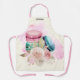 Un tablier à l'image délicieuse. 3 macarons colorés, roses, verts et bleus avec un bouquet floral rose et un soupçon d'aquarelle rose. Délicieux et élégant aussi ! Arrière - plan jaune clair. Personnalisez avec un nom.