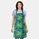Tablier de cuisine aux motifs floraux colorés, belle fleur marécageuse, énorme feuille de burdock et bourgeons de pissenlit. palette de couleurs : jaune doré et citron, turquoise, turquoise, vert et bleu. © Julia Khoroshikh www.juliakhoroshikh.art #floralpattern #marshmarigold #caltha #floralprint #fleurs sauvages #zazzlemade #apronss #hometextiles #kitchentextiles