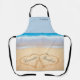Tablier Mariage sur la plage bleu poussiéreux 2 cœurs dans