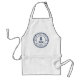 Parfait pour la grillade à quai, ce tablier sur mesure cool comprend votre nom de bateau et le registre du navire en lettres bleu marine sur un insigne de corde avec une illustration d'ancre nautique au centre.