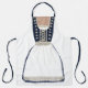 Tablier amusant réalisé avec des graphismes d'une robe de marine allemande bleu et ivoire sale, la robe traditionnelle pour l'Autriche, la Suisse et l'Allemagne. Des graphismes de dentelle, damas, fleurs et lacage de ruban ajoutent une touche réaliste à ce joli tablier. Idéal pour une hôtesse lors d'une fête de l'Oktoberfest.