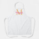 This modern monogrammed apron features a pink script name and orange initial. It is easily customizable.