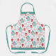 Ce mignon tablier de cuisine dispose d'un motif bleu, rouge, rose et blanc de pots à café de style boho, tasses, jarres à sucre et cuillères, ainsi que des images de fleurs et de baies. En haut et en bas sont assortis aux bordures bleues solides, avec votre monogramme en bleu sur une bannière circulaire en haut. Joli, et personnalisé, aussi.