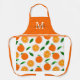 Ce tablier monogramme est doté d'un motif orange aquarelle avec un dessus orange solide où votre initiale et votre nom peuvent être ajoutés.