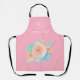 Aquarelle moderne Rose floral script élégant tablier, rose pastel rose vif design turquoise girly. Sur des roses floraux tendance, dahlias, snapdragons, eucalyptus, belle conception botanique. Personnalisez le nom, le script, le monogramme avec la typographie moderne.