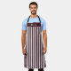 Ce tablier imprimé en entier est doté d'un motif bordeaux et blanc rayé avec une section bordeaux brûlé solide en haut pour votre nom personnalisé.