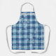 Este diseño está en un tamaño mediano/medium con 30" pulgadas de largo. Luzca elegante al servir o cocinar en Navidad con un hermoso delantal que le hará verse mejor que un chef de restaurante. Atienda a su familia y amigos de forma exclusiva y única. Este lindo delantal en tonos azul y blanco, con diseño de cuadros y estampado de copos de nieve, y una cinta donde puede personalizar con su nombre o apedillo de familia, es elegante y clásico. Personalizarlo con su nombre le dará ese toque especial. Y si su fiesta es familiar, imagine a todos junto a usted sirviendo con sus propios delantales navideños personalizados.