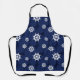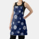 Elégant tablier à roue bleu marine et blanc Grande roue blanche de navire modelé sur un arrière - plan de cercles, dans des couleurs bleu profond.