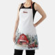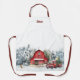 Forêt d'hiver personnalisée monogrammed avec le nom. Forêt festive d'hiver avec grange rouge et aquarelle de camion rouge. Parfait pour les cuisines de vacances et la cuisson. Un tablier de Noël classique à utiliser d'année en année.