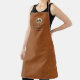 L'tablier professionnel présente un design moderne avec un emblème en monogramme d'or métallique brossé sur arrière - plan en cuir marron sable texturé.