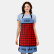 Poulets rustiques modernes à la mode sur plaid de buffle noir rouge et nom de monogramme bleu Apron.