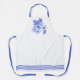 Joli tablier de chef en blanc avec un motif décoratif bleu ou des fleurs d'oiseau et d'edelweiss. La ligne inférieure de l'ourlet a des rayures bleues. Idéal comme cadeau ou pour les petites entreprises.
