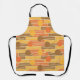 Ce tablier a un design moderne du milieu du siècle de rectangles répétitifs en orange, or et marron avec des cercles superposés.