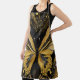 Papillon jaune doré clair sur arrière - plan noir avec des tourbillons élégants ornés design.